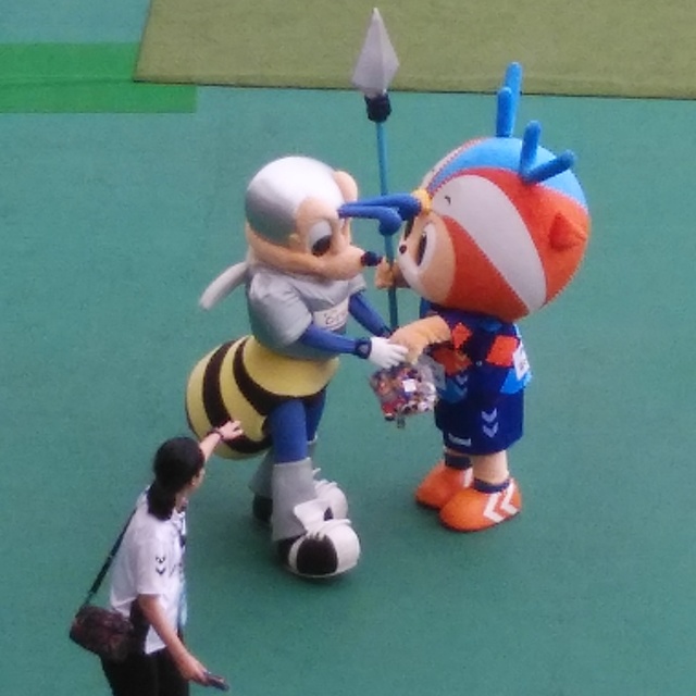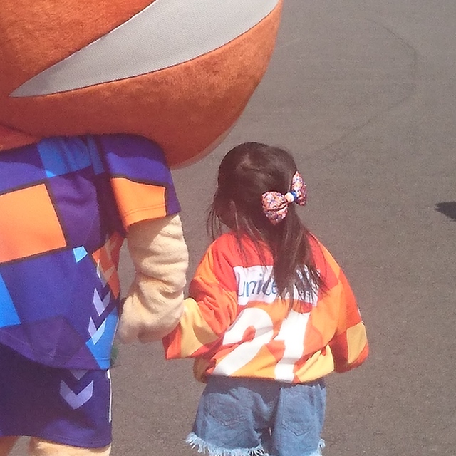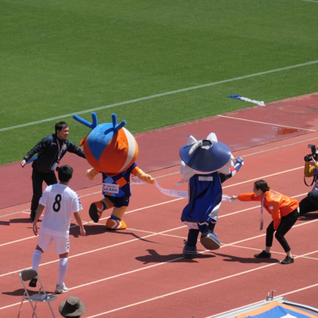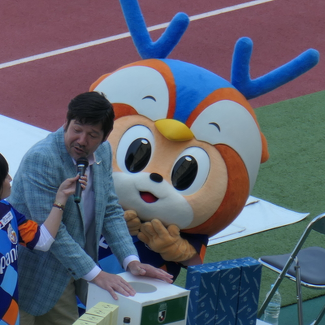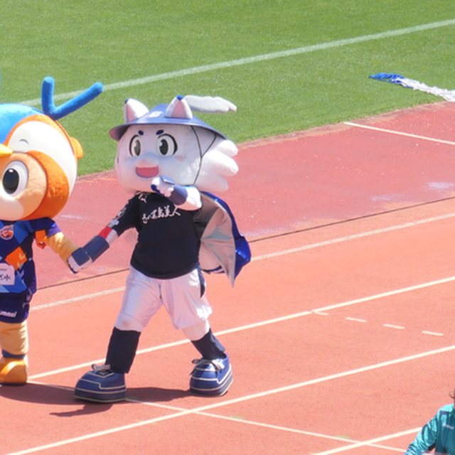 勝ったねー!って試合後ヴィヴィくんとハイタッチ。ゆきなりさん