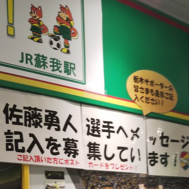 フラッグに佐藤勇人選手への寄せ書き赤沼圭子(千葉担当)