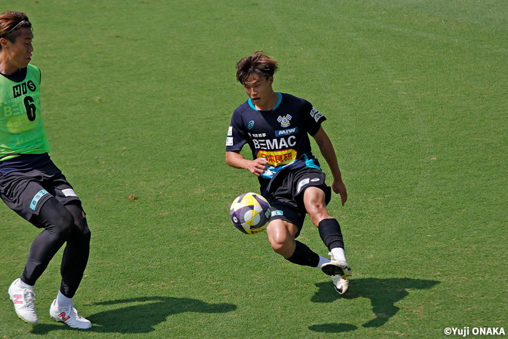 J2でも戦える自信をつかんだのは、夏のナイトゲームが始まるころ。「試合をやっていくたびですね。『これでは、まだ粗削り過ぎる』『これだと考えすぎで、もっと自分を出した方がいいんかな』といった具合に、試合を重ねながらああでもない、こうでもないと考え、プレーし続けていきました」。8月9日の第25節・ロアッソ熊本戦では、横山夢樹の右からのクロスをファーサイドでダイビングヘッド。このチーム3点目が、貴重な決勝ゴールとなった。