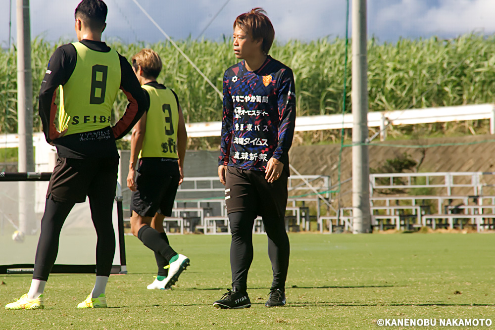 いつもそばにいた盟友・岩渕良太の存在は、そんな揺らぎの中での大きな支えだった。阿吽の呼吸で動ける相手は多くない。昨季の第10節・長野戦(○4-3)でのアベックゴールは二人にとって特別な時間で、「サッカーって楽しい」と自然に思えたという。今季限りでの引退を表明した岩渕を「最終戦は彼を笑顔で送り出したい」。そう願った富所の思いは深かった。最終戦はJ2昇格を狙う八戸との対戦。結果は1-1の引き分けで、琉球の今シーズンが終わった。真摯に取り組んできたからこそ、結果がついてこなかった悔しさは小さくない。けれども、シーズンを通して得たものは確かにあった。中央を使う感覚、攻撃の完結を意識する重要性、若手に伝えるべき判断の部分…これからにつながる線ははっきり残っている。