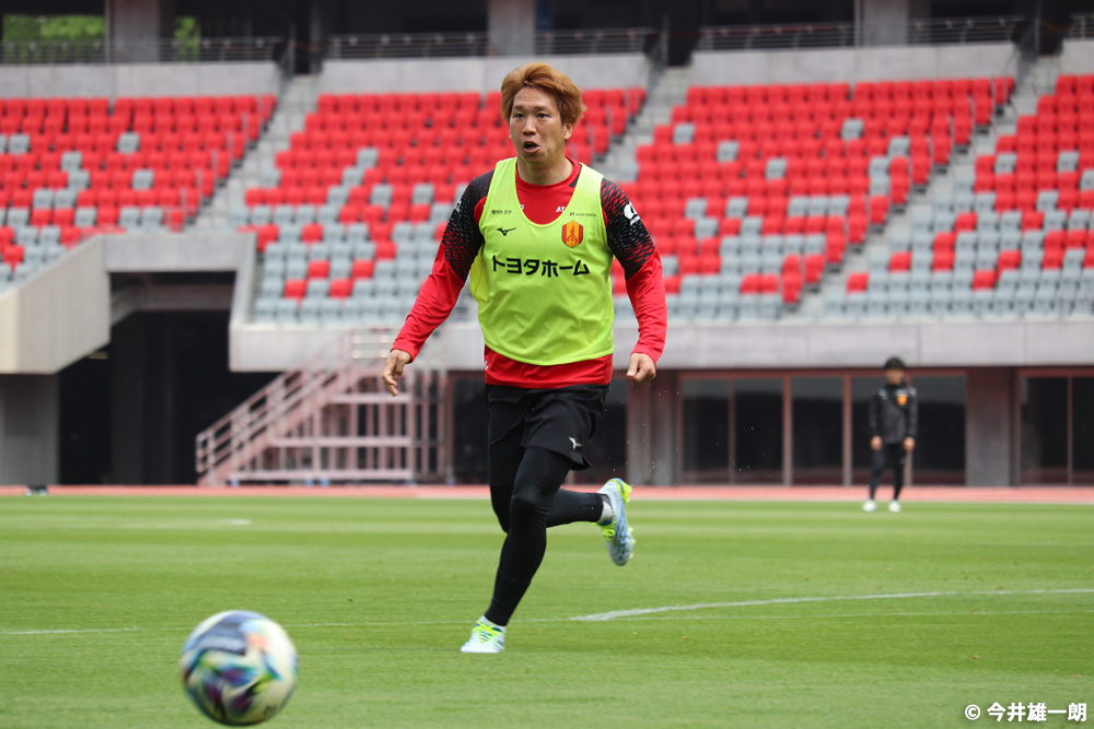毎回のチームのトレーニングでは、必ずと言っていいほど浅野が最初にピッチに姿を見せる。彼か中山克広がピッチ一番乗りの常連だ。そしてふたりで楽しそうにボールを蹴り、その輪に他の選手が加わって、リフティングゲームにキャッキャする選手たちを見ることになるのが名古屋の日常の風景だ。サッカーを楽しみたい、というよりは、毎日サッカーできることが楽しくて仕方ない、という方が正しいのかもしれない。そこに結果がついてくればなお楽しいが、そうでなくてもサッカーは楽しいから一喜一憂もしない。その境地に達しつつある浅野は、これからもミシャ監督にとって、何よりチームにとって有用な選手であり続けることだろう。新たな瑞穂の記念すべきファーストゴールは相手に決められてしまったが、名古屋の選手の1点目は浅野のものである。「一生あの映像は使ってくださいね。僕が使用を許さないですけど。そしてその権利料でガッポリ(笑)」。やっぱり真面目に話すのは居心地が悪い。でも、大事な試合をひとまず“勝利”で終えられたことに安堵の心も湧いてくる。